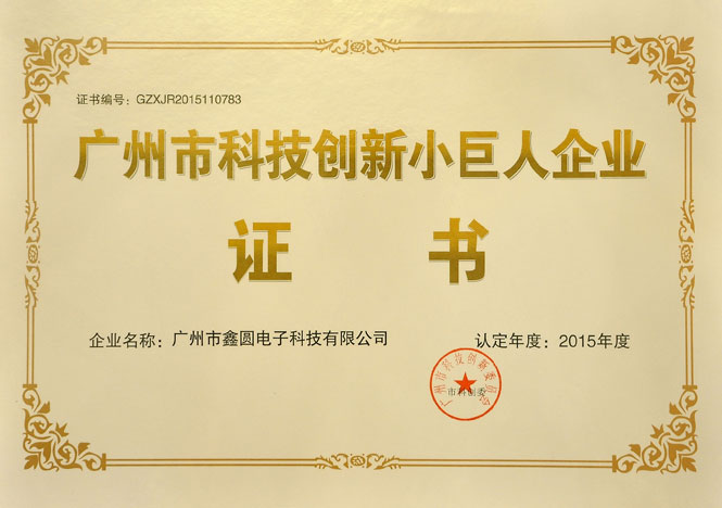 - 2015年度廣州市《科技創(chuàng)新小巨人企業(yè)》
