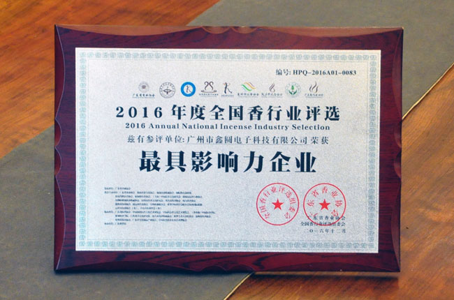 - 2017年度全國(guó)香行業(yè)評(píng)選《最具影響力品牌》