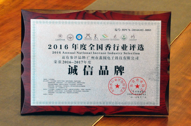 - 2016年度全國(guó)沉香行業(yè)評(píng)選《誠(chéng)信品牌》