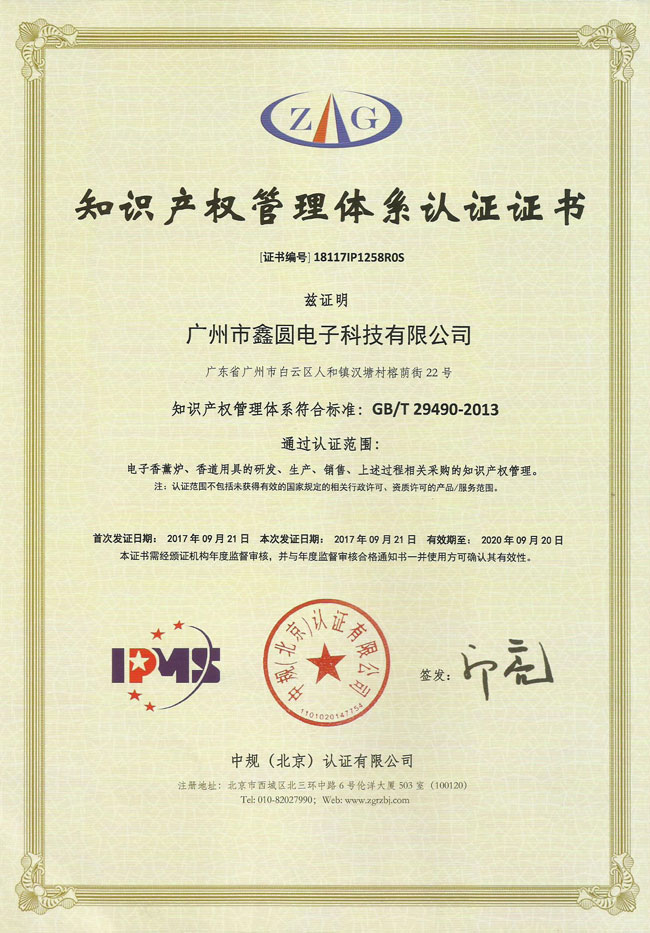 - 2017年榮獲國(guó)家《知識(shí)產(chǎn)權(quán)管理體系認(rèn)證》