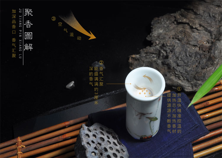 聚香品香爐,顧名思義,因?yàn)槠涑鱿憧谠O(shè)計(jì)的比較深,所以有聚集香氣的功能。酉圓工坊原創(chuàng)設(shè)計(jì),國(guó)家實(shí)用新型和外觀(guān)設(shè)計(jì)的專(zhuān)利技術(shù),結(jié)合現(xiàn)代電子發(fā)熱科技,爐身采用景德鎮(zhèn)手工拉坯或古法大漆工藝,是高端沉香奇楠收藏玩家的品香利器。